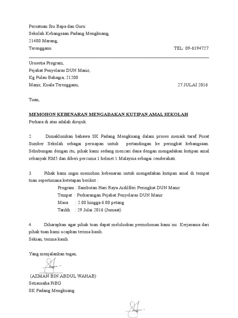 Contoh surat mohon kutipan sumbangan dari ahli pibg. XXXXKSII yang diterbitkan oleh Kantor Urusan Agama Kecamatan. Education kutipan derma Read more Cahaya Hayyat Follow kutipan derma Read more Education Recommended.